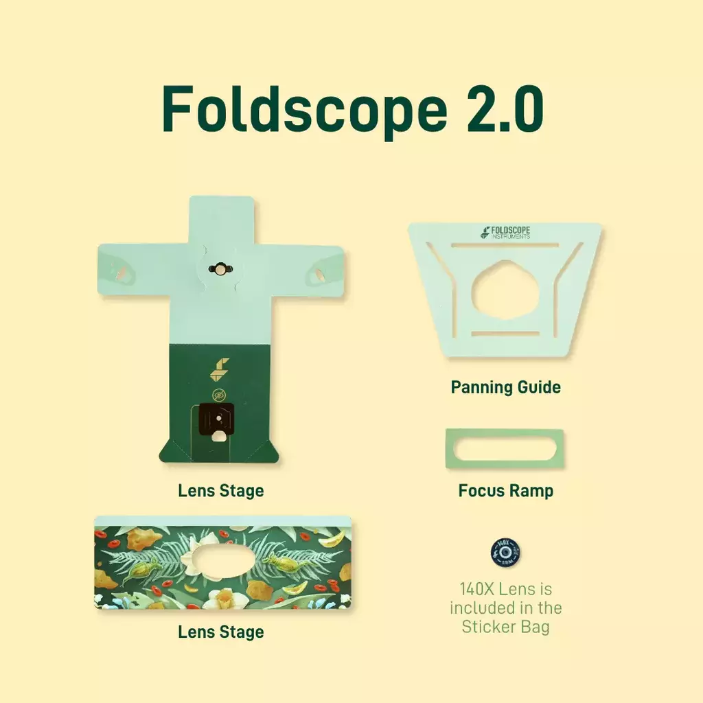 Paquete idéntico al de la página web estadounidense de Foldscope.